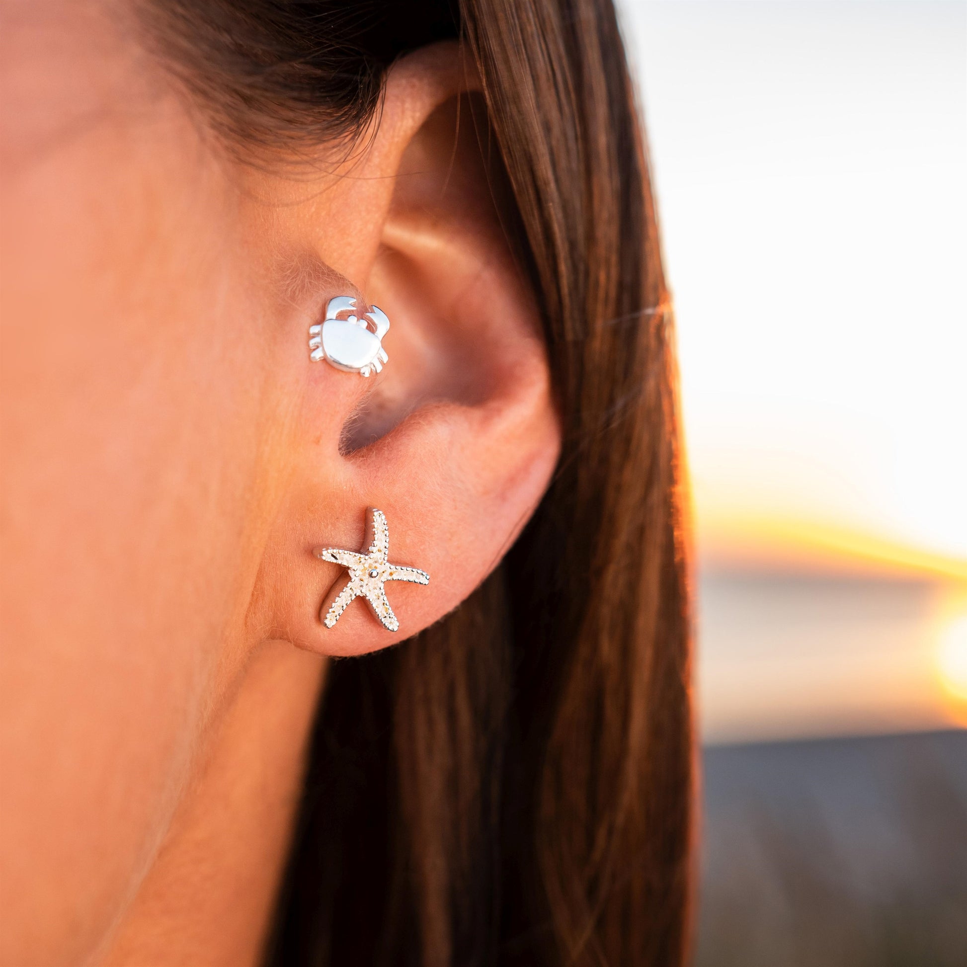 Erleben Sie das Gefühl von Sonne, Strand und Meer mit unseren filigranen Seestern-Ohrsteckern! Beide Modelle vereinen hochwertiges 925er Sterling-Silber mit echtem Strandsand und setzen stilvolle Akzente im maritimen Design.