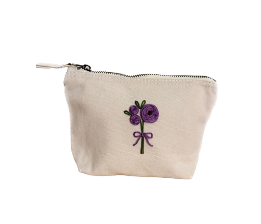 lila Handgestickte Kosmetiktasche S mit Rosen Schleife und Initial A–Z Unikat Geschenk