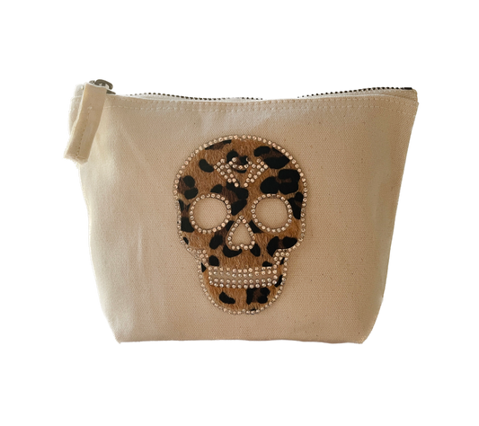 Kosmetiktasche Beige Totenkopf Strass Make-up Tasche Schminktasche Geschenk